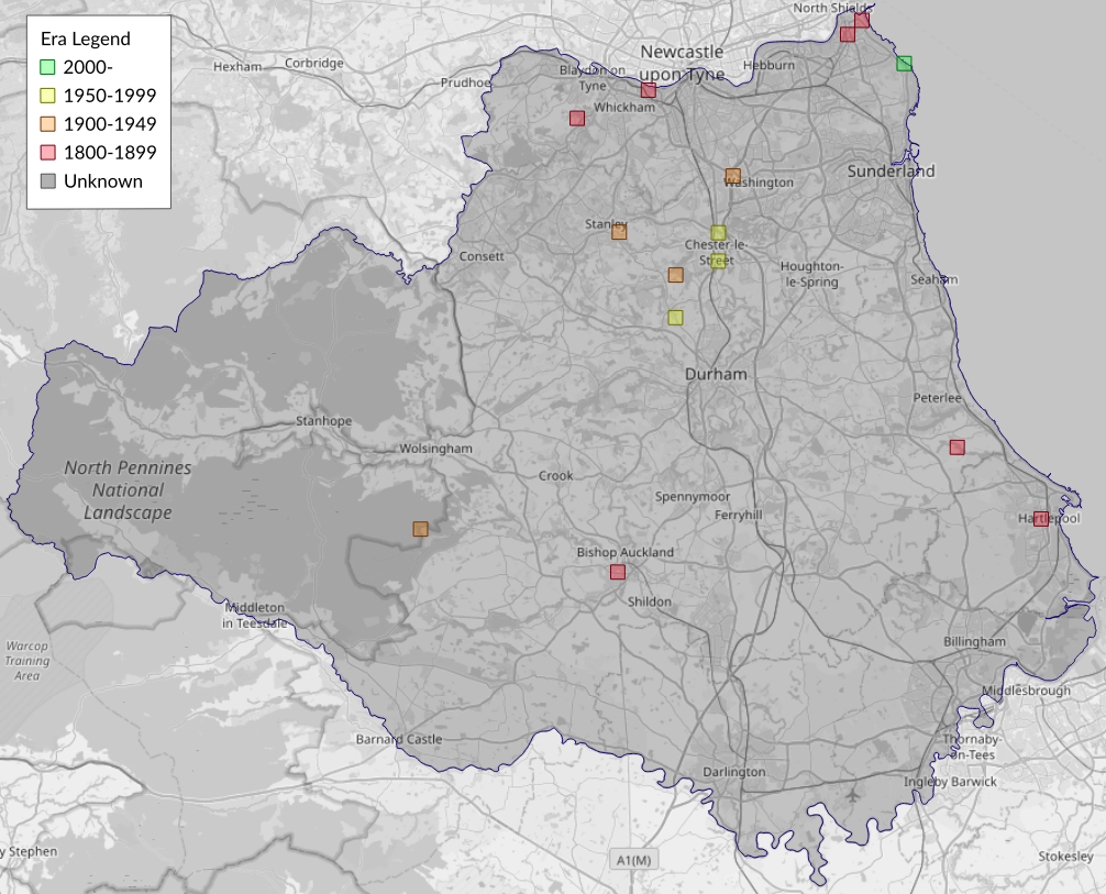 This map shows all records of Sword-grass - Xylena exsoleta in the Durham (VC66) database per monad (1km grid square). The map can be explored further by zooming and panning, can be reset using the button on the left, and can be filtered by selecting the era. Click on a monad to view a full list of species recorded in it, or its containing hexad (10km grid square).
