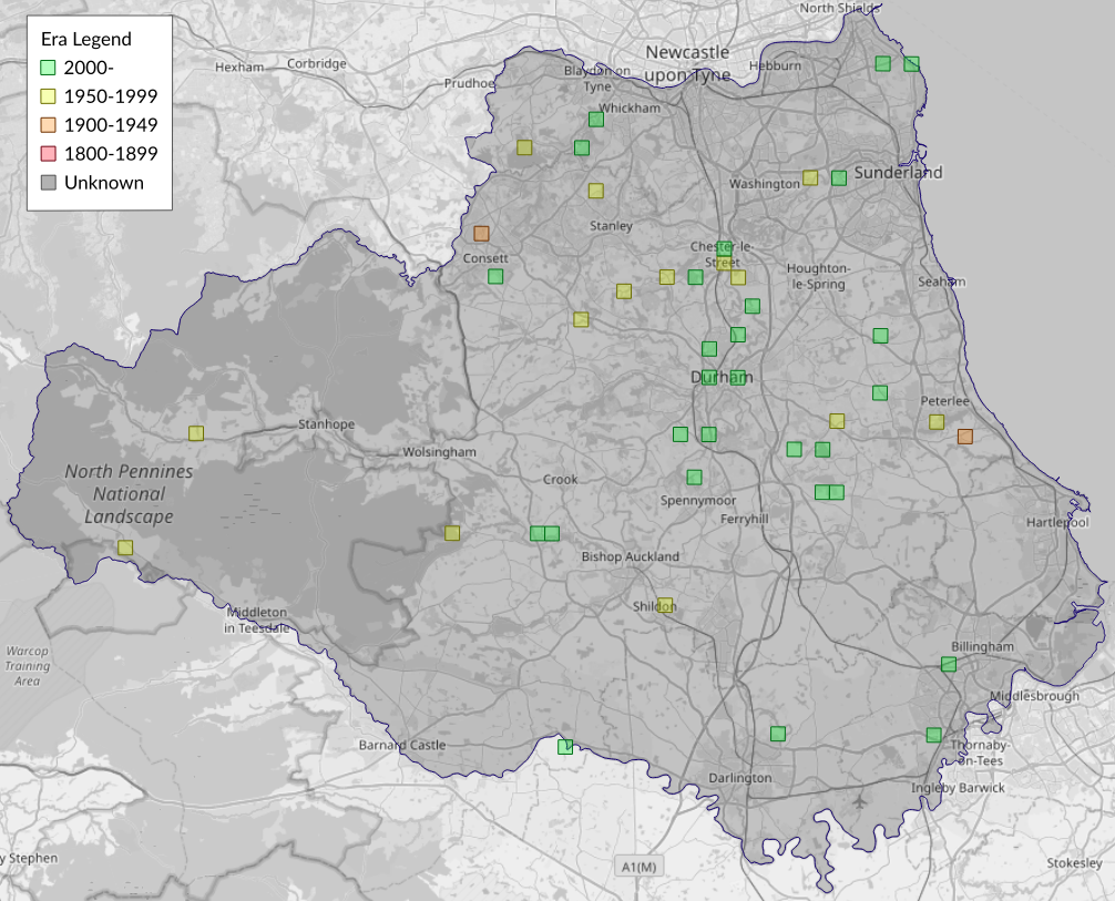 This map shows all records of - Plutella porrectella in the Durham (VC66) database per monad (1km grid square). The map can be explored further by zooming and panning, can be reset using the button on the left, and can be filtered by selecting the era. Click on a monad to view a full list of species recorded in it, or its containing hexad (10km grid square).