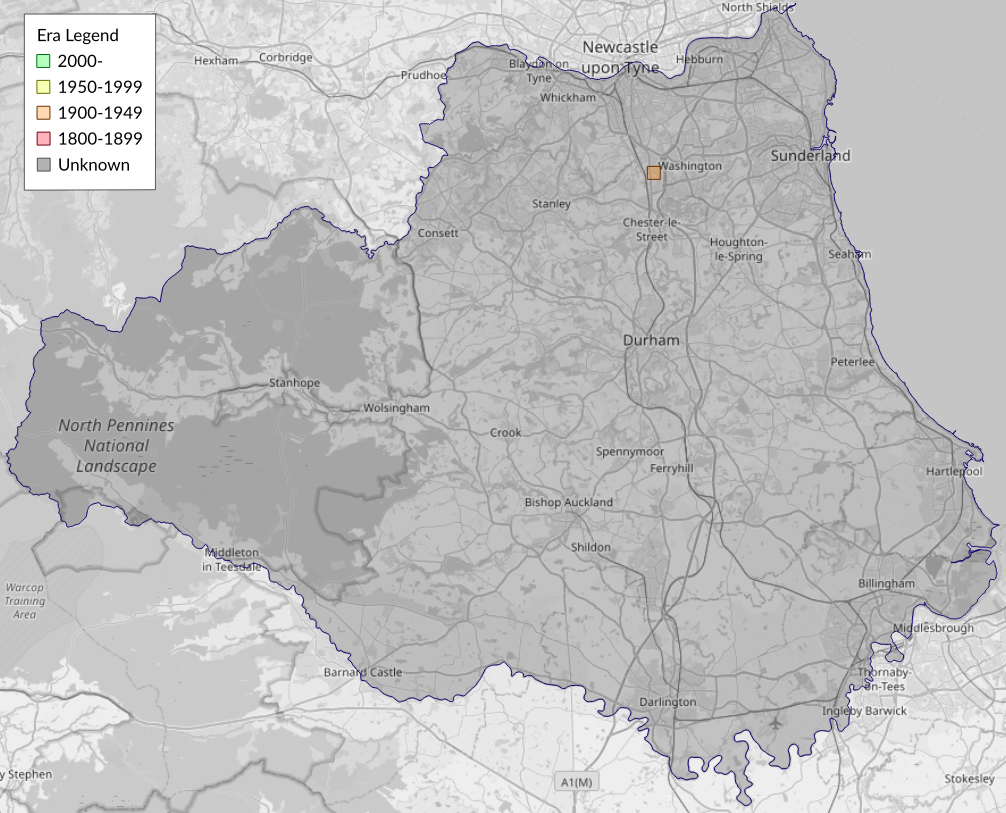 This map shows all records of Dusky Clearwing - Paranthrene tabaniformis in the Durham (VC66) database per monad (1km grid square). The map can be explored further by zooming and panning, can be reset using the button on the left, and can be filtered by selecting the era. Click on a monad to view a full list of species recorded in it, or its containing hexad (10km grid square).