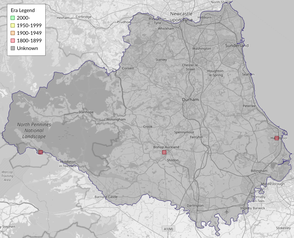 This map shows all records of Hornet Moth - Sesia apiformis in the Durham (VC66) database per monad (1km grid square). The map can be explored further by zooming and panning, can be reset using the button on the left, and can be filtered by selecting the era. Click on a monad to view a full list of species recorded in it, or its containing hexad (10km grid square).