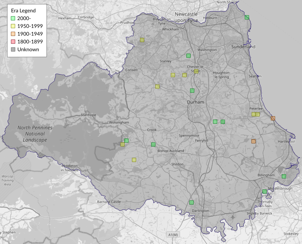 This map shows all records of - Acleris hastiana in the Durham (VC66) database per monad (1km grid square). The map can be explored further by zooming and panning, can be reset using the button on the left, and can be filtered by selecting the era. Click on a monad to view a full list of species recorded in it, or its containing hexad (10km grid square).