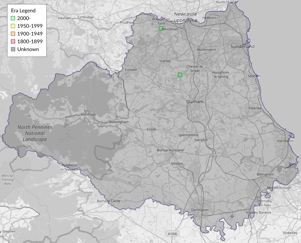 This map shows all records of - Acleris schalleriana in the Durham (VC66) database per monad (1km grid square). The map can be explored further by zooming and panning, can be reset using the button on the left, and can be filtered by selecting the era. Click on a monad to view a full list of species recorded in it, or its containing hexad (10km grid square).