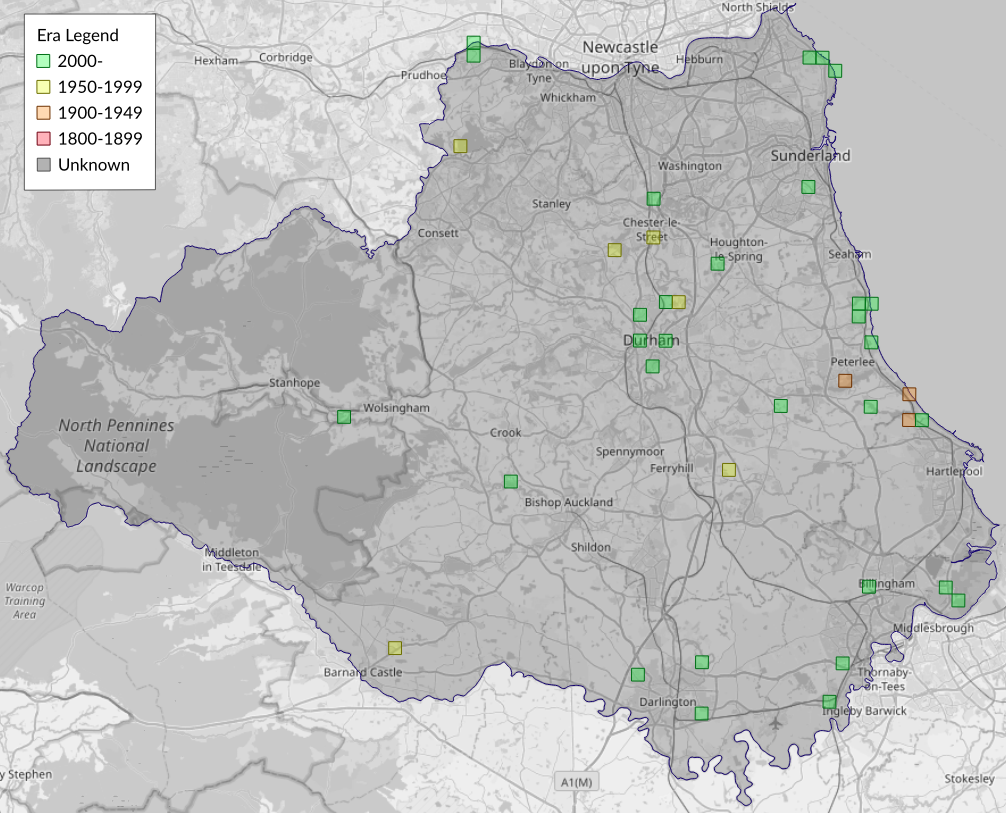 This map shows all records of - Agapeta zoegana in the Durham (VC66) database per monad (1km grid square). The map can be explored further by zooming and panning, can be reset using the button on the left, and can be filtered by selecting the era. Click on a monad to view a full list of species recorded in it, or its containing hexad (10km grid square).