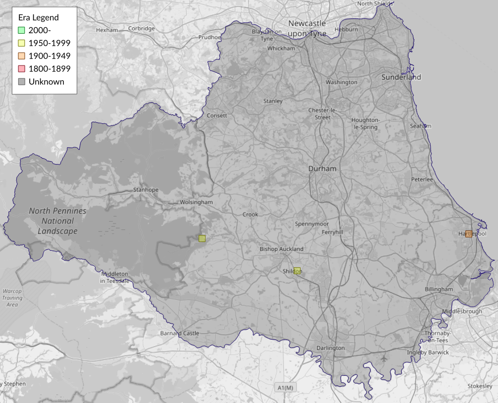 This map shows all records of - Cnephasia conspersana in the Durham (VC66) database per monad (1km grid square). The map can be explored further by zooming and panning, can be reset using the button on the left, and can be filtered by selecting the era. Click on a monad to view a full list of species recorded in it, or its containing hexad (10km grid square).