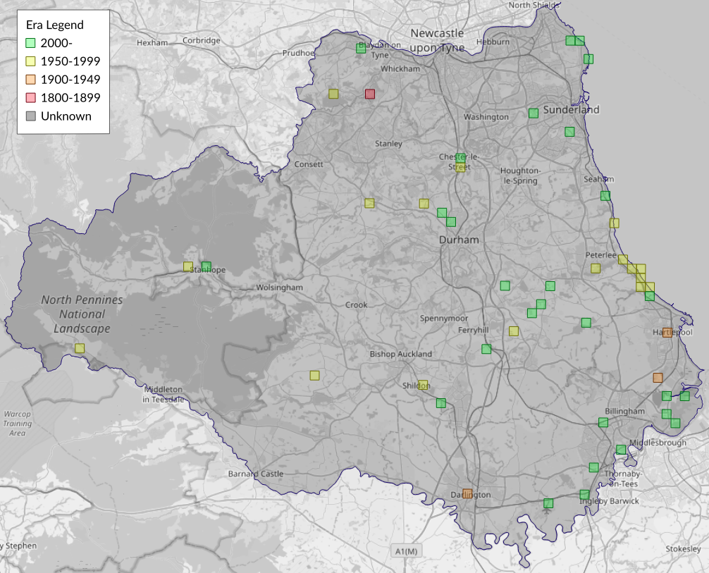 This map shows all records of - Cochylimorpha straminea in the Durham (VC66) database per monad (1km grid square). The map can be explored further by zooming and panning, can be reset using the button on the left, and can be filtered by selecting the era. Click on a monad to view a full list of species recorded in it, or its containing hexad (10km grid square).