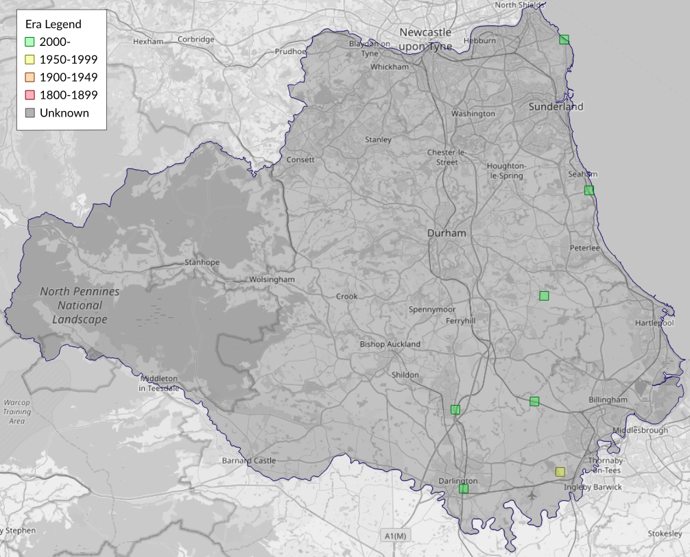 This map shows all records of - Cochylis roseana in the Durham (VC66) database per monad (1km grid square). The map can be explored further by zooming and panning, can be reset using the button on the left, and can be filtered by selecting the era. Click on a monad to view a full list of species recorded in it, or its containing hexad (10km grid square).