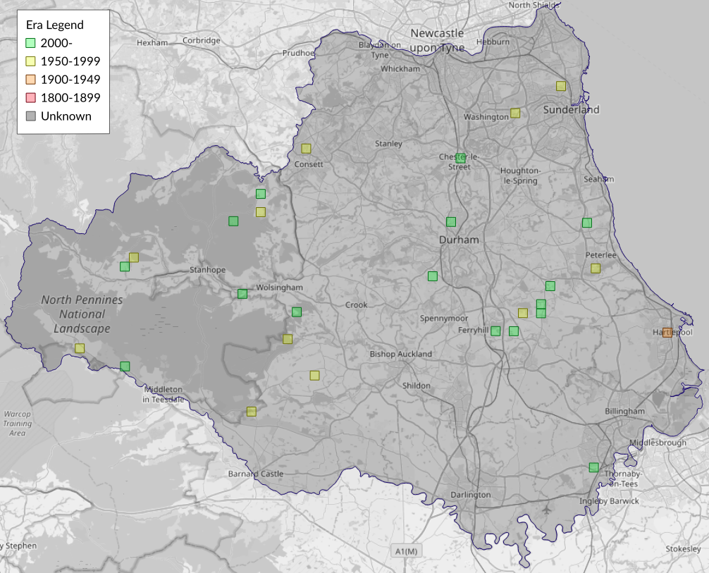 This map shows all records of - Eana osseana in the Durham (VC66) database per monad (1km grid square). The map can be explored further by zooming and panning, can be reset using the button on the left, and can be filtered by selecting the era. Click on a monad to view a full list of species recorded in it, or its containing hexad (10km grid square).