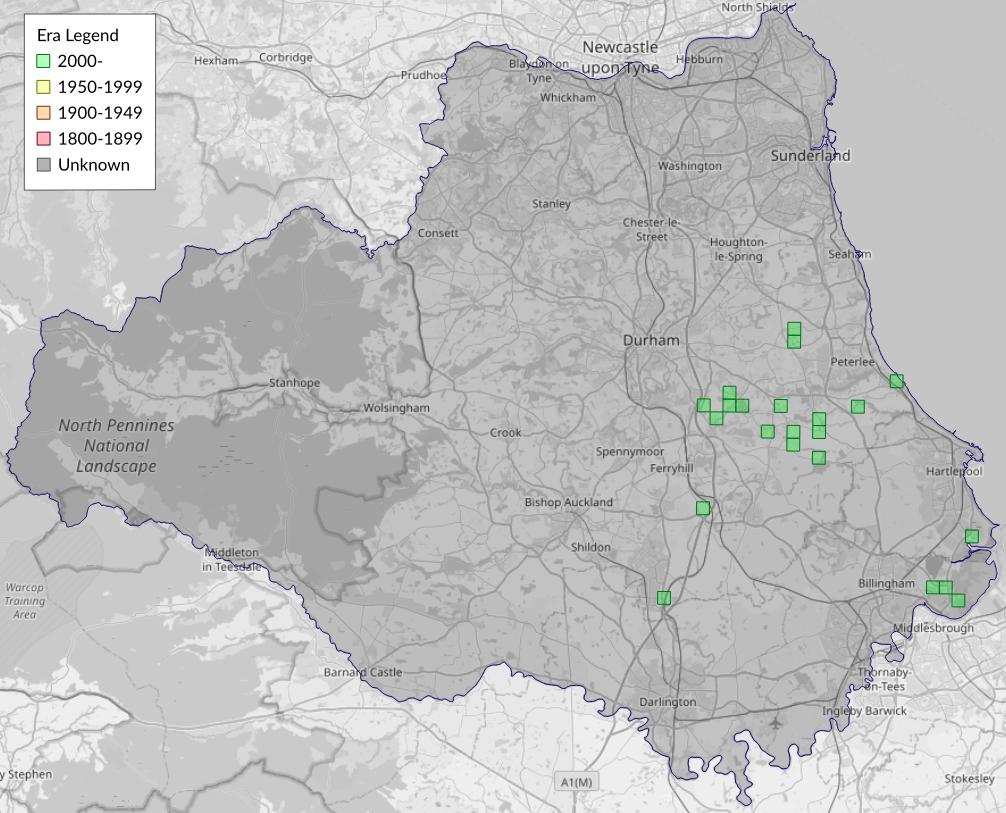 This map shows all records of Endothenia gentianaeana/marginana agg. - Endothenia gentianaeana/marginana in the Durham (VC66) database per monad (1km grid square). The map can be explored further by zooming and panning, can be reset using the button on the left, and can be filtered by selecting the era. Click on a monad to view a full list of species recorded in it, or its containing hexad (10km grid square).