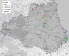 This map shows all records of - Grapholita lunulana in the Durham (VC66) database per monad (1km grid square). The map can be explored further by zooming and panning, can be reset using the button on the left, and can be filtered by selecting the era. Click on a monad to view a full list of species recorded in it, or its containing hexad (10km grid square).