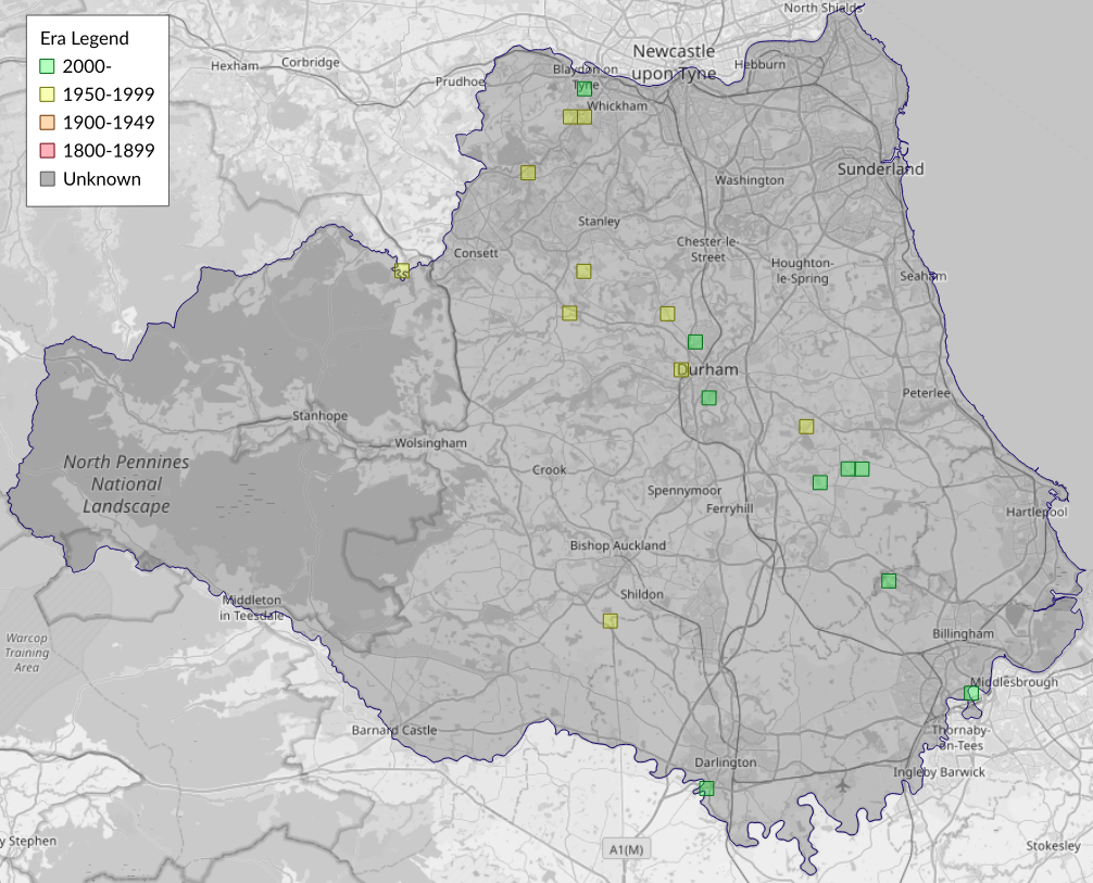 This map shows all records of - Ptycholoma lecheana in the Durham (VC66) database per monad (1km grid square). The map can be explored further by zooming and panning, can be reset using the button on the left, and can be filtered by selecting the era. Click on a monad to view a full list of species recorded in it, or its containing hexad (10km grid square).