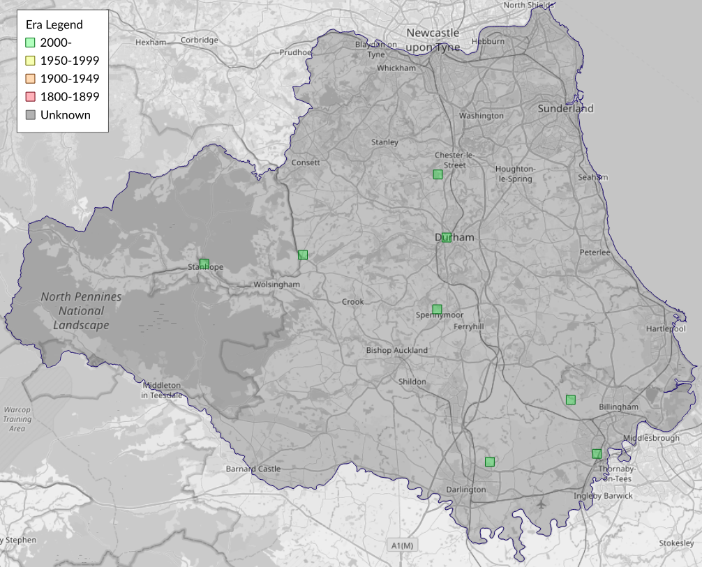 This map shows all records of - Ptycholomoides aeriferana in the Durham (VC66) database per monad (1km grid square). The map can be explored further by zooming and panning, can be reset using the button on the left, and can be filtered by selecting the era. Click on a monad to view a full list of species recorded in it, or its containing hexad (10km grid square).