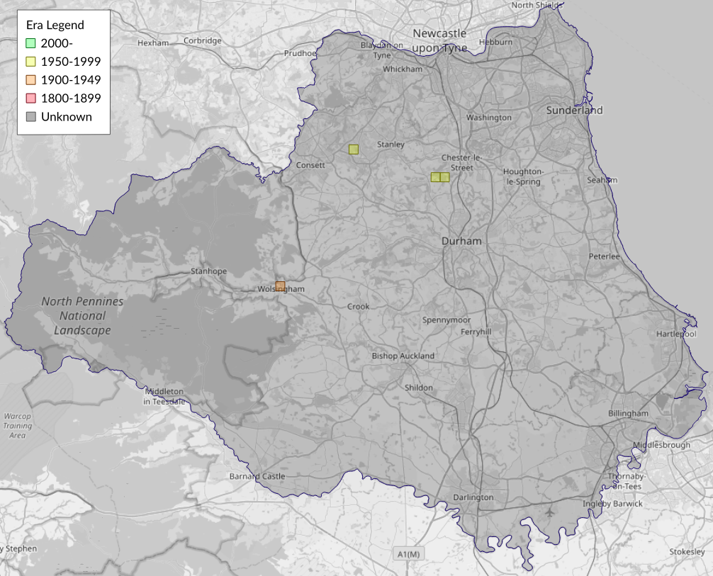 This map shows all records of - Rhopobota myrtillana in the Durham (VC66) database per monad (1km grid square). The map can be explored further by zooming and panning, can be reset using the button on the left, and can be filtered by selecting the era. Click on a monad to view a full list of species recorded in it, or its containing hexad (10km grid square).