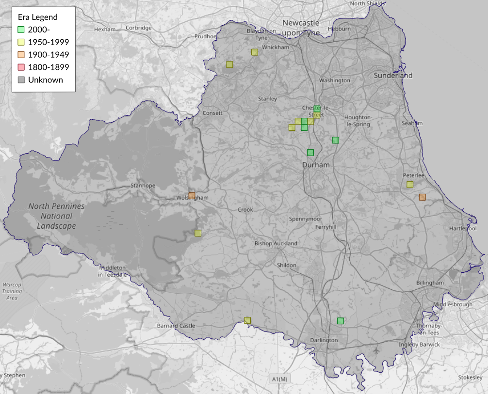 This map shows all records of - Thyraylia nana in the Durham (VC66) database per monad (1km grid square). The map can be explored further by zooming and panning, can be reset using the button on the left, and can be filtered by selecting the era. Click on a monad to view a full list of species recorded in it, or its containing hexad (10km grid square).