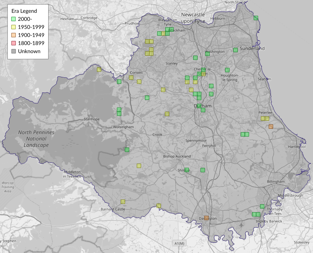 This map shows all records of - Tortricodes alternella in the Durham (VC66) database per monad (1km grid square). The map can be explored further by zooming and panning, can be reset using the button on the left, and can be filtered by selecting the era. Click on a monad to view a full list of species recorded in it, or its containing hexad (10km grid square).