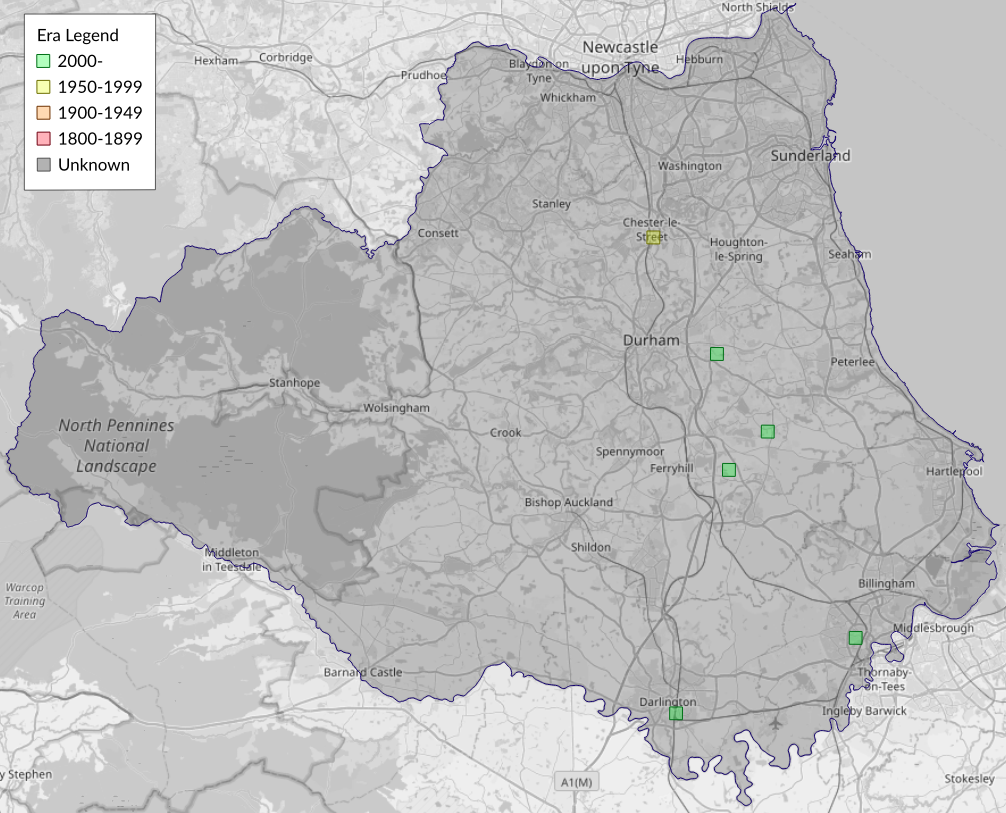 This map shows all records of - Bedellia somnulentella in the Durham (VC66) database per monad (1km grid square). The map can be explored further by zooming and panning, can be reset using the button on the left, and can be filtered by selecting the era. Click on a monad to view a full list of species recorded in it, or its containing hexad (10km grid square).