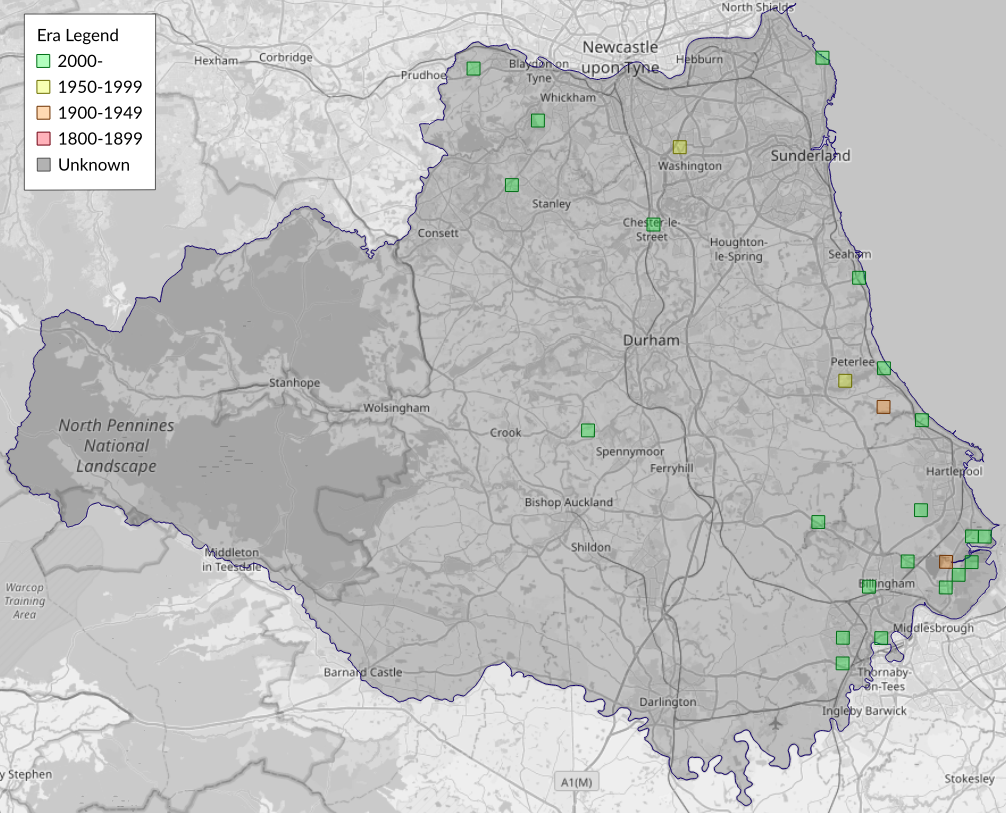 This map shows all records of - Crambus perlella in the Durham (VC66) database per monad (1km grid square). The map can be explored further by zooming and panning, can be reset using the button on the left, and can be filtered by selecting the era. Click on a monad to view a full list of species recorded in it, or its containing hexad (10km grid square).