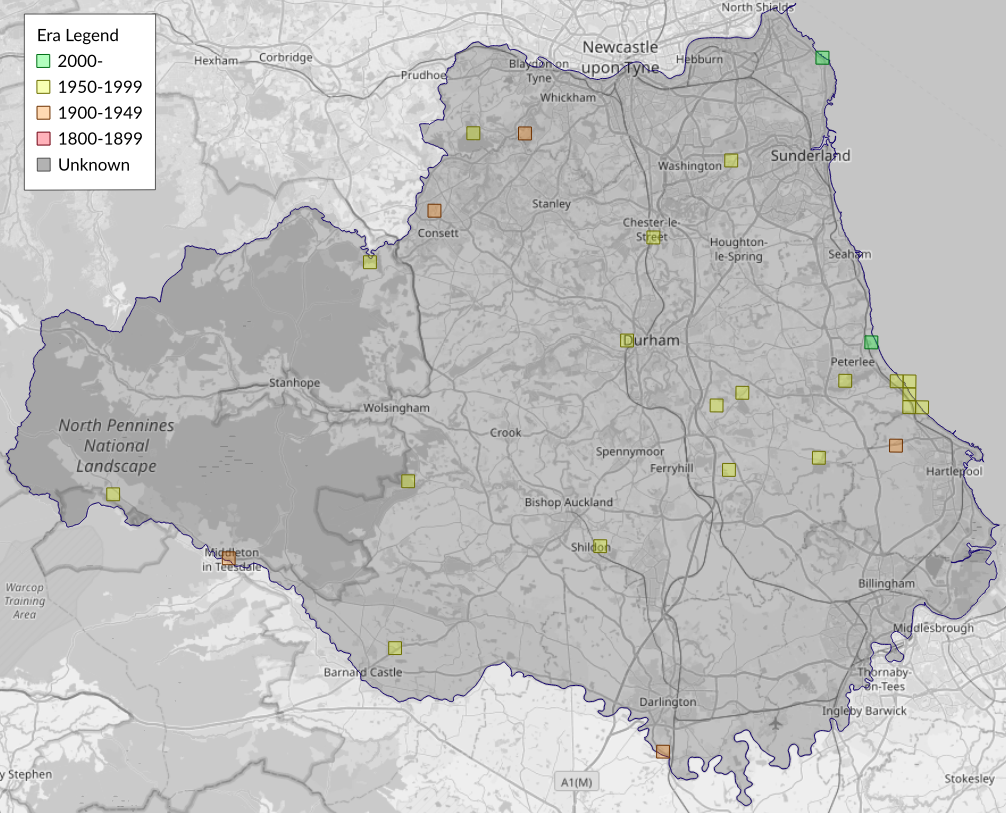 This map shows all records of - Agonopterix kaekeritziana in the Durham (VC66) database per monad (1km grid square). The map can be explored further by zooming and panning, can be reset using the button on the left, and can be filtered by selecting the era. Click on a monad to view a full list of species recorded in it, or its containing hexad (10km grid square).