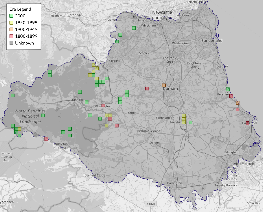 In Robson's day 'widely distributed [...]', but we find today that, probably due to the disappearance of many hedgerows that used to form its preferred lowland habitat, it is more restricted to [...] open moorland [...]. [...] In Durham it is [...] known from many moorland sites, e.g. from Edmundbyers and Muggleswick right down to Widdybank Fell (including some of the Weardale moors). An additional habitat in this county where the species does extremely well is provided by the old magnesian limestone quarries. It is recorded frequently from Bishop Middleham quarry and is also on record from Highland House quarry and Thrislington.