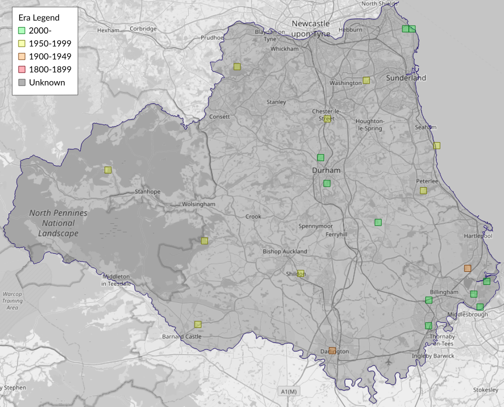 This map shows all records of - Aproaerema anthyllidella in the Durham (VC66) database per monad (1km grid square). The map can be explored further by zooming and panning, can be reset using the button on the left, and can be filtered by selecting the era. Click on a monad to view a full list of species recorded in it, or its containing hexad (10km grid square).