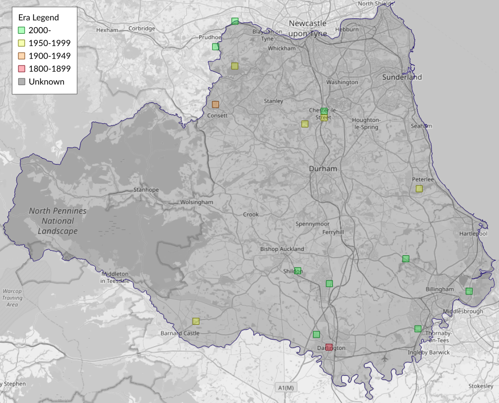 This map shows all records of - Athrips mouffetella in the Durham (VC66) database per monad (1km grid square). The map can be explored further by zooming and panning, can be reset using the button on the left, and can be filtered by selecting the era. Click on a monad to view a full list of species recorded in it, or its containing hexad (10km grid square).