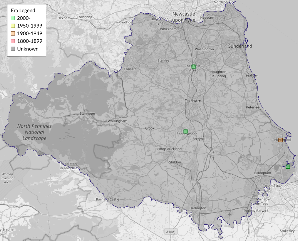 This map shows all records of - Chionodes fumatella in the Durham (VC66) database per monad (1km grid square). The map can be explored further by zooming and panning, can be reset using the button on the left, and can be filtered by selecting the era. Click on a monad to view a full list of species recorded in it, or its containing hexad (10km grid square).
