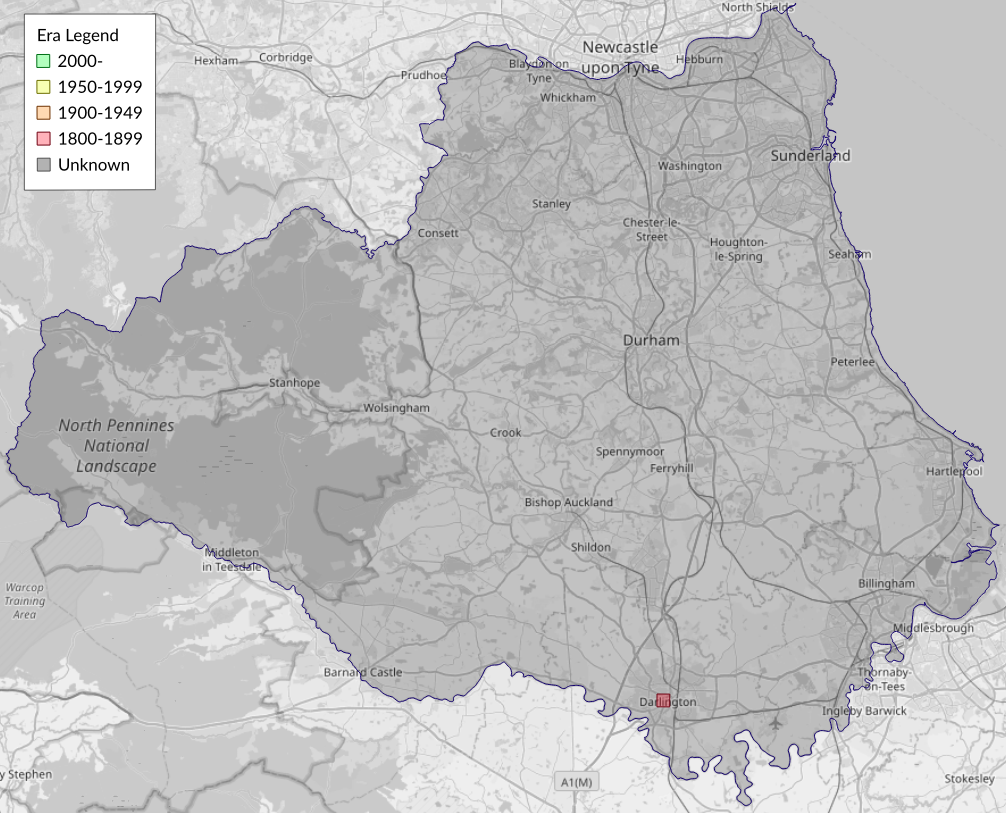 This map shows all records of - Digitivalva pulicariae in the Durham (VC66) database per monad (1km grid square). The map can be explored further by zooming and panning, can be reset using the button on the left, and can be filtered by selecting the era. Click on a monad to view a full list of species recorded in it, or its containing hexad (10km grid square).