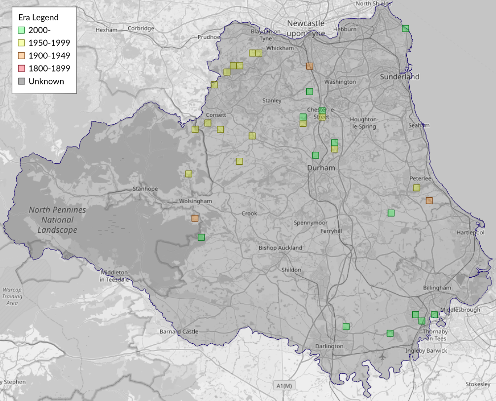 This map shows all records of Caloptilia alchimiella/robustella agg. - Caloptilia alchimiella/robustella in the Durham (VC66) database per monad (1km grid square). The map can be explored further by zooming and panning, can be reset using the button on the left, and can be filtered by selecting the era. Click on a monad to view a full list of species recorded in it, or its containing hexad (10km grid square).