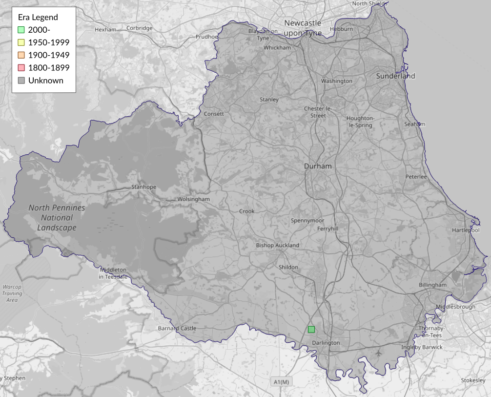 This map shows all records of - Mompha divisella in the Durham (VC66) database per monad (1km grid square). The map can be explored further by zooming and panning, can be reset using the button on the left, and can be filtered by selecting the era. Click on a monad to view a full list of species recorded in it, or its containing hexad (10km grid square).
