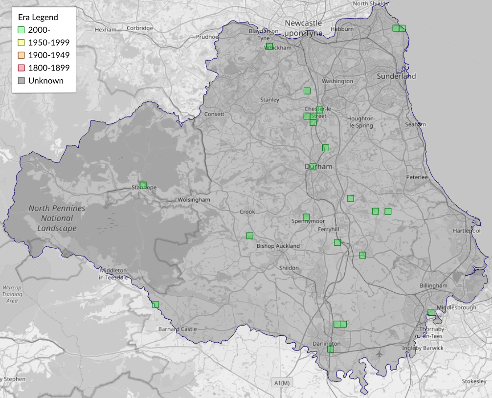 This map shows all records of Grey Shoulder-knot - Lithophane ornitopus in the Durham (VC66) database per monad (1km grid square). The map can be explored further by zooming and panning, can be reset using the button on the left, and can be filtered by selecting the era. Click on a monad to view a full list of species recorded in it, or its containing hexad (10km grid square).