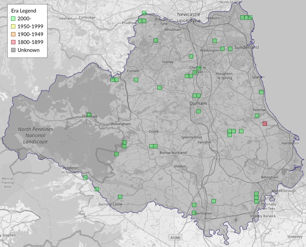 This map shows all records of Pale Pinion - Lithophane socia in the Durham (VC66) database per monad (1km grid square). The map can be explored further by zooming and panning, can be reset using the button on the left, and can be filtered by selecting the era. Click on a monad to view a full list of species recorded in it, or its containing hexad (10km grid square).