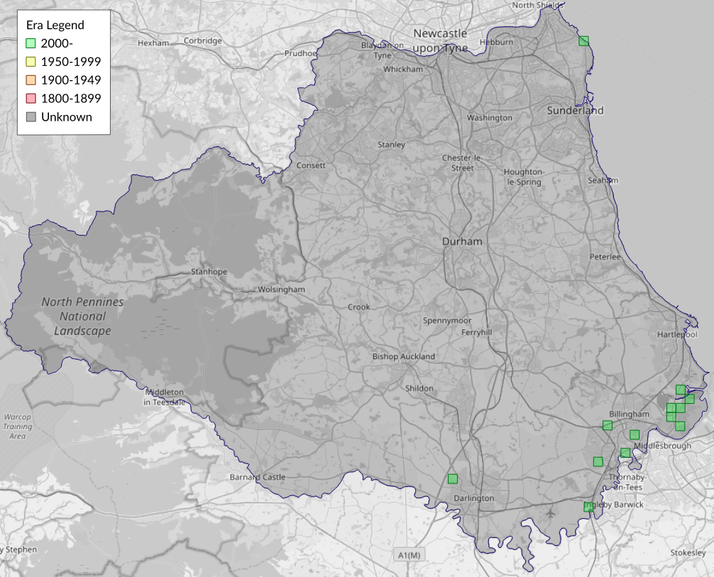 This map shows all records of Southern Wainscot - Mythimna straminea in the Durham (VC66) database per monad (1km grid square). The map can be explored further by zooming and panning, can be reset using the button on the left, and can be filtered by selecting the era. Click on a monad to view a full list of species recorded in it, or its containing hexad (10km grid square).