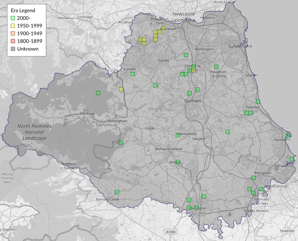 This map shows all records of Rufous Minor - Oligia versicolor in the Durham (VC66) database per monad (1km grid square). The map can be explored further by zooming and panning, can be reset using the button on the left, and can be filtered by selecting the era. Click on a monad to view a full list of species recorded in it, or its containing hexad (10km grid square).