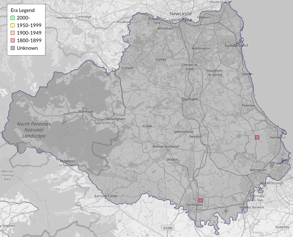 This map shows all records of Pale Shining Brown - Polia bombycina in the Durham (VC66) database per monad (1km grid square). The map can be explored further by zooming and panning, can be reset using the button on the left, and can be filtered by selecting the era. Click on a monad to view a full list of species recorded in it, or its containing hexad (10km grid square).