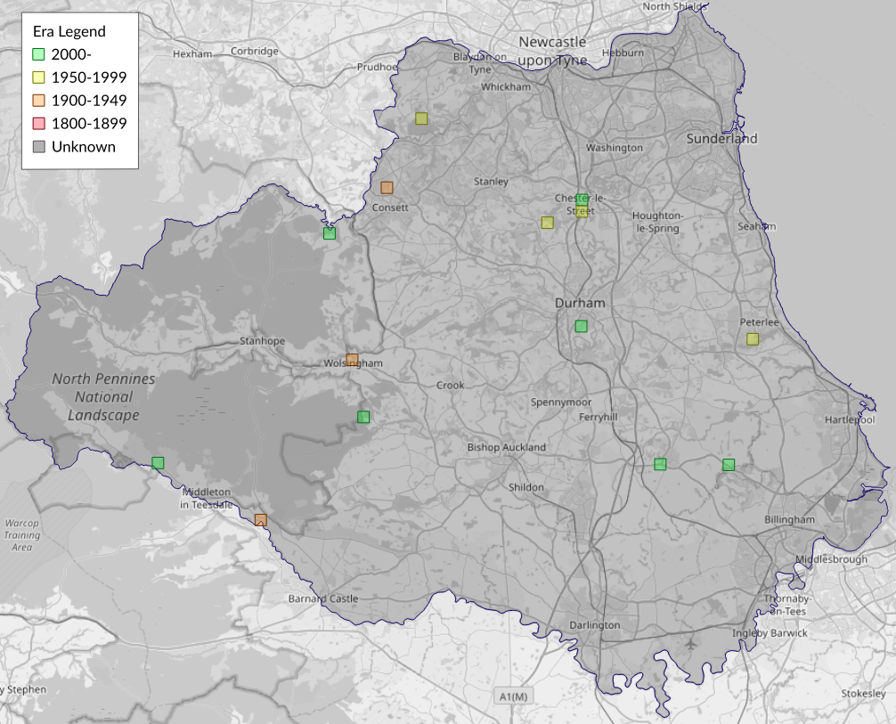 This map shows all records of - Denisia similella in the Durham (VC66) database per monad (1km grid square). The map can be explored further by zooming and panning, can be reset using the button on the left, and can be filtered by selecting the era. Click on a monad to view a full list of species recorded in it, or its containing hexad (10km grid square).