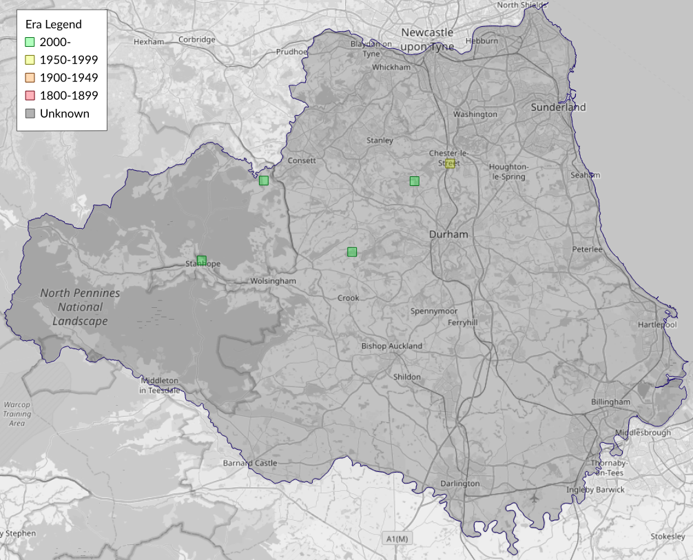 This map shows all records of Brindled Plume - Amblyptilia punctidactyla in the Durham (VC66) database per monad (1km grid square). The map can be explored further by zooming and panning, can be reset using the button on the left, and can be filtered by selecting the era. Click on a monad to view a full list of species recorded in it, or its containing hexad (10km grid square).