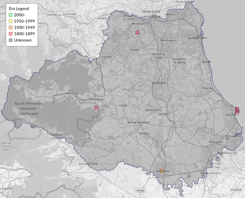 This map shows all records of Striped Hawk-moth - Hyles livornica in the Durham (VC66) database per monad (1km grid square). The map can be explored further by zooming and panning, can be reset using the button on the left, and can be filtered by selecting the era. Click on a monad to view a full list of species recorded in it, or its containing hexad (10km grid square).
