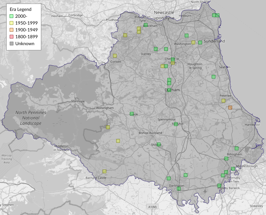 This map shows all records of - Tinea trinotella in the Durham (VC66) database per monad (1km grid square). The map can be explored further by zooming and panning, can be reset using the button on the left, and can be filtered by selecting the era. Click on a monad to view a full list of species recorded in it, or its containing hexad (10km grid square).