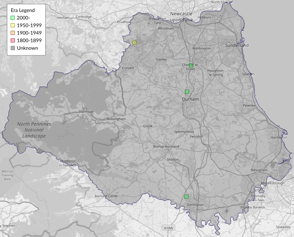 This map shows all records of Carnation Tortrix - Cacoecimorpha pronubana in the Durham (VC66) database per monad (1km grid square). The map can be explored further by zooming and panning, can be reset using the button on the left, and can be filtered by selecting the era. Click on a monad to view a full list of species recorded in it, or its containing hexad (10km grid square).