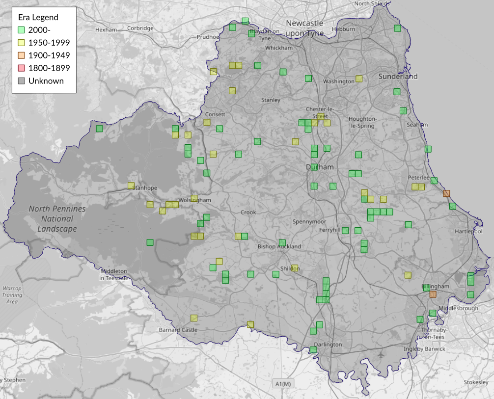 This map shows all records of - Cydia ulicetana in the Durham (VC66) database per monad (1km grid square). The map can be explored further by zooming and panning, can be reset using the button on the left, and can be filtered by selecting the era. Click on a monad to view a full list of species recorded in it, or its containing hexad (10km grid square).