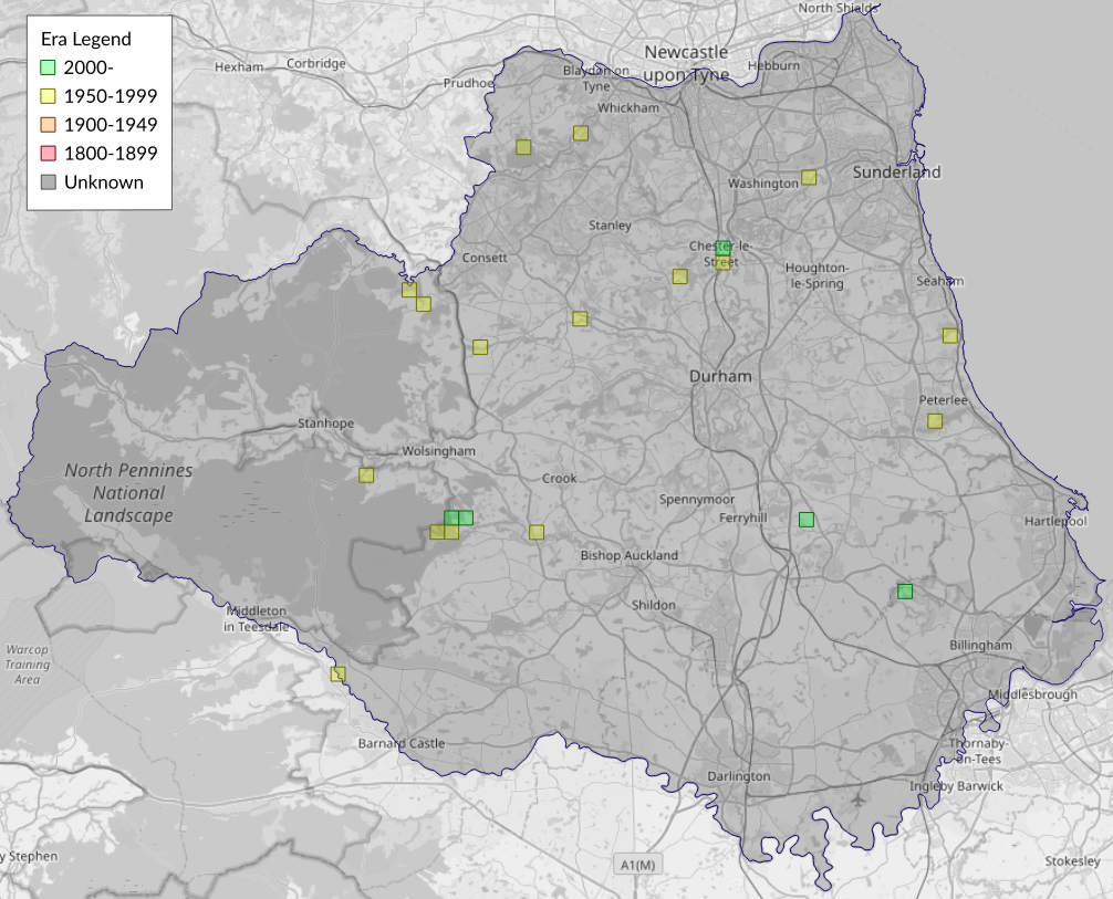 This map shows all records of - Epinotia subocellana in the Durham (VC66) database per monad (1km grid square). The map can be explored further by zooming and panning, can be reset using the button on the left, and can be filtered by selecting the era. Click on a monad to view a full list of species recorded in it, or its containing hexad (10km grid square).