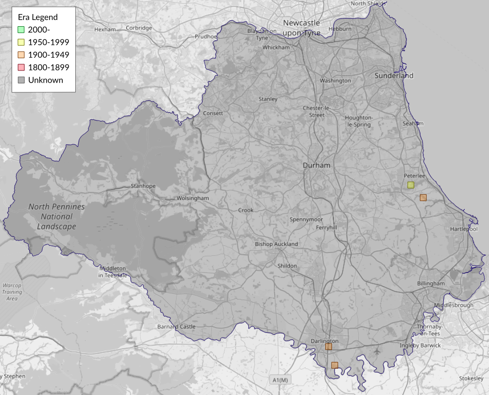 This map shows all records of - Pammene splendidulana in the Durham (VC66) database per monad (1km grid square). The map can be explored further by zooming and panning, can be reset using the button on the left, and can be filtered by selecting the era. Click on a monad to view a full list of species recorded in it, or its containing hexad (10km grid square).
