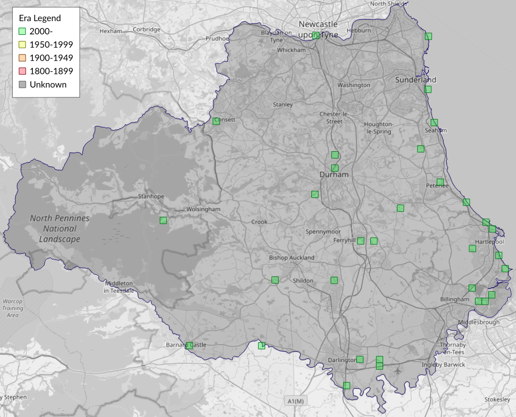 This map shows all records of Burnet species - Zygaena sp. in the Durham (VC66) database per monad (1km grid square). The map can be explored further by zooming and panning, can be reset using the button on the left, and can be filtered by selecting the era. Click on a monad to view a full list of species recorded in it, or its containing hexad (10km grid square).