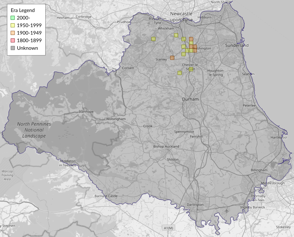 This map shows all records of - Dasystoma salicella in the Durham (VC66) database per monad (1km grid square). The map can be explored further by zooming and panning, can be reset using the button on the left, and can be filtered by selecting the era. Click on a monad to view a full list of species recorded in it, or its containing hexad (10km grid square).