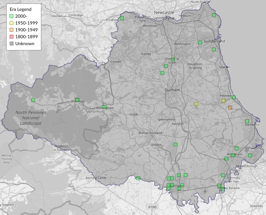 This map shows all records of - Pyrausta aurata in the Durham (VC66) database per monad (1km grid square). The map can be explored further by zooming and panning, can be reset using the button on the left, and can be filtered by selecting the era. Click on a monad to view a full list of species recorded in it, or its containing hexad (10km grid square).