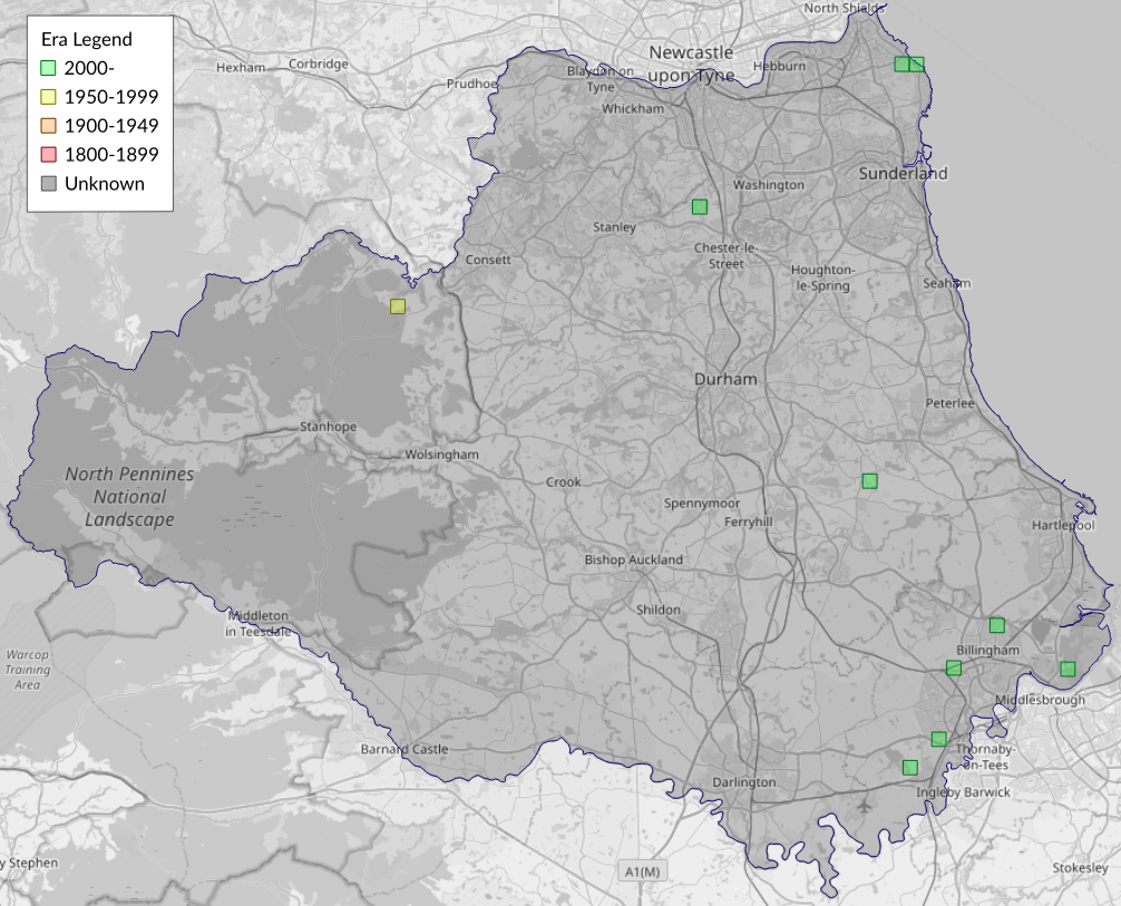 This map shows all records of - Agonopterix propinquella in the Durham (VC66) database per monad (1km grid square). The map can be explored further by zooming and panning, can be reset using the button on the left, and can be filtered by selecting the era. Click on a monad to view a full list of species recorded in it, or its containing hexad (10km grid square).