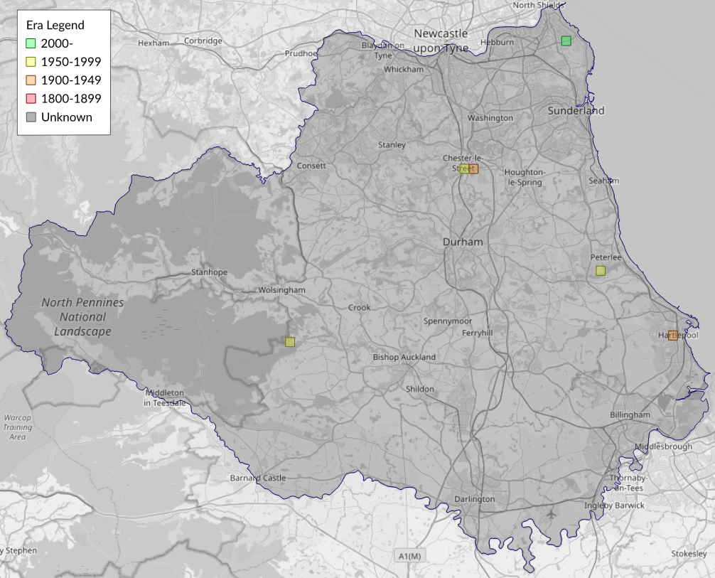 This map shows all records of - Exaeretia allisella in the Durham (VC66) database per monad (1km grid square). The map can be explored further by zooming and panning, can be reset using the button on the left, and can be filtered by selecting the era. Click on a monad to view a full list of species recorded in it, or its containing hexad (10km grid square).