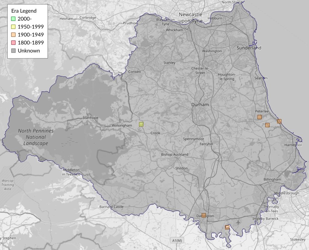 This map shows all records of - Elachista humilis in the Durham (VC66) database per monad (1km grid square). The map can be explored further by zooming and panning, can be reset using the button on the left, and can be filtered by selecting the era. Click on a monad to view a full list of species recorded in it, or its containing hexad (10km grid square).