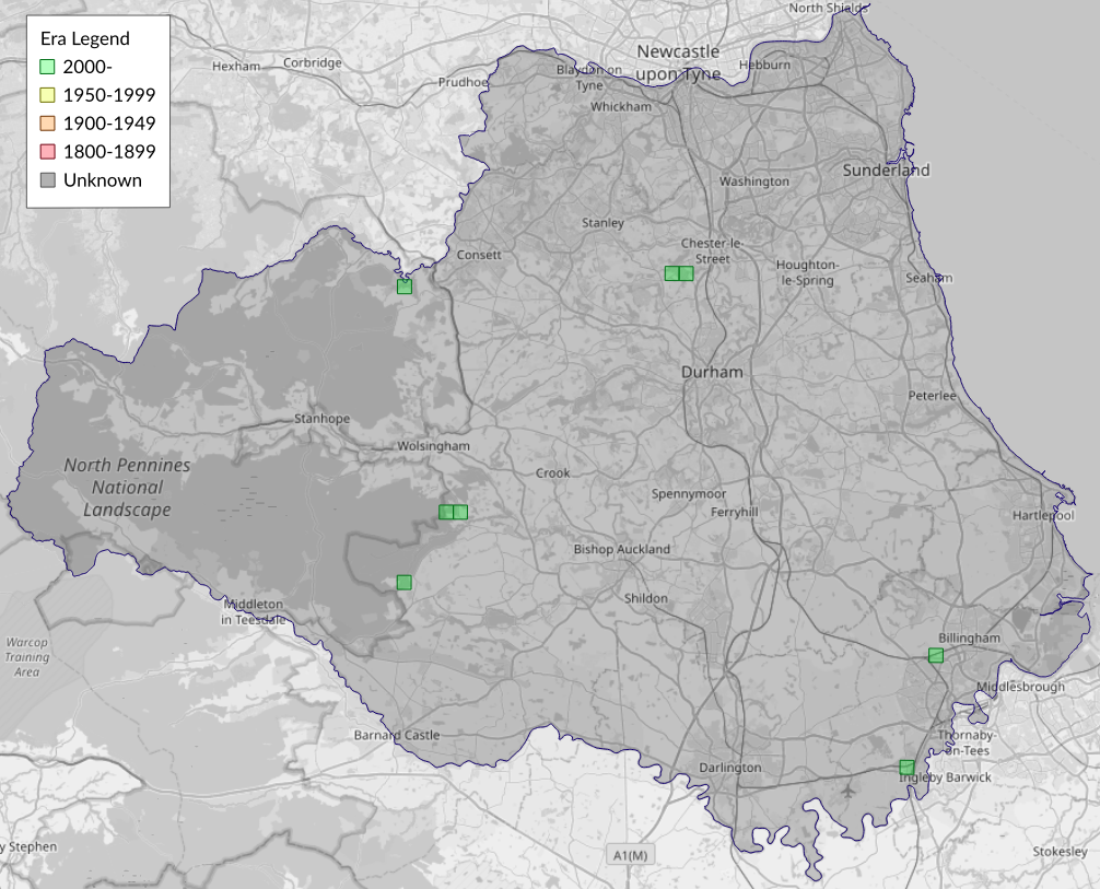 This map shows all records of Beautiful Snout - Hypena crassalis in the Durham (VC66) database per monad (1km grid square). The map can be explored further by zooming and panning, can be reset using the button on the left, and can be filtered by selecting the era. Click on a monad to view a full list of species recorded in it, or its containing hexad (10km grid square).