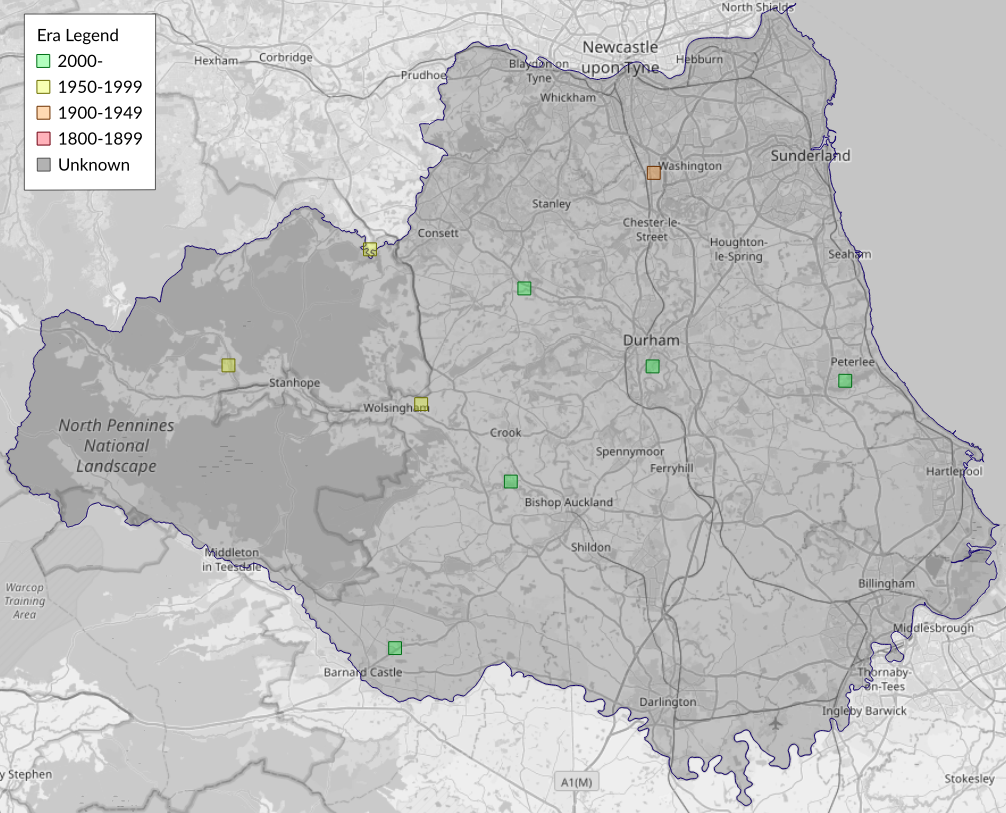 This map shows all records of Pale November Moth - Epirrita christyi in the Durham (VC66) database per monad (1km grid square). The map can be explored further by zooming and panning, can be reset using the button on the left, and can be filtered by selecting the era. Click on a monad to view a full list of species recorded in it, or its containing hexad (10km grid square).
