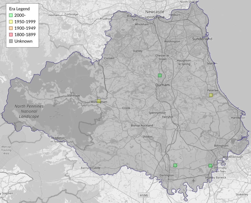 This map shows all records of Gem - Nycterosea obstipata in the Durham (VC66) database per monad (1km grid square). The map can be explored further by zooming and panning, can be reset using the button on the left, and can be filtered by selecting the era. Click on a monad to view a full list of species recorded in it, or its containing hexad (10km grid square).